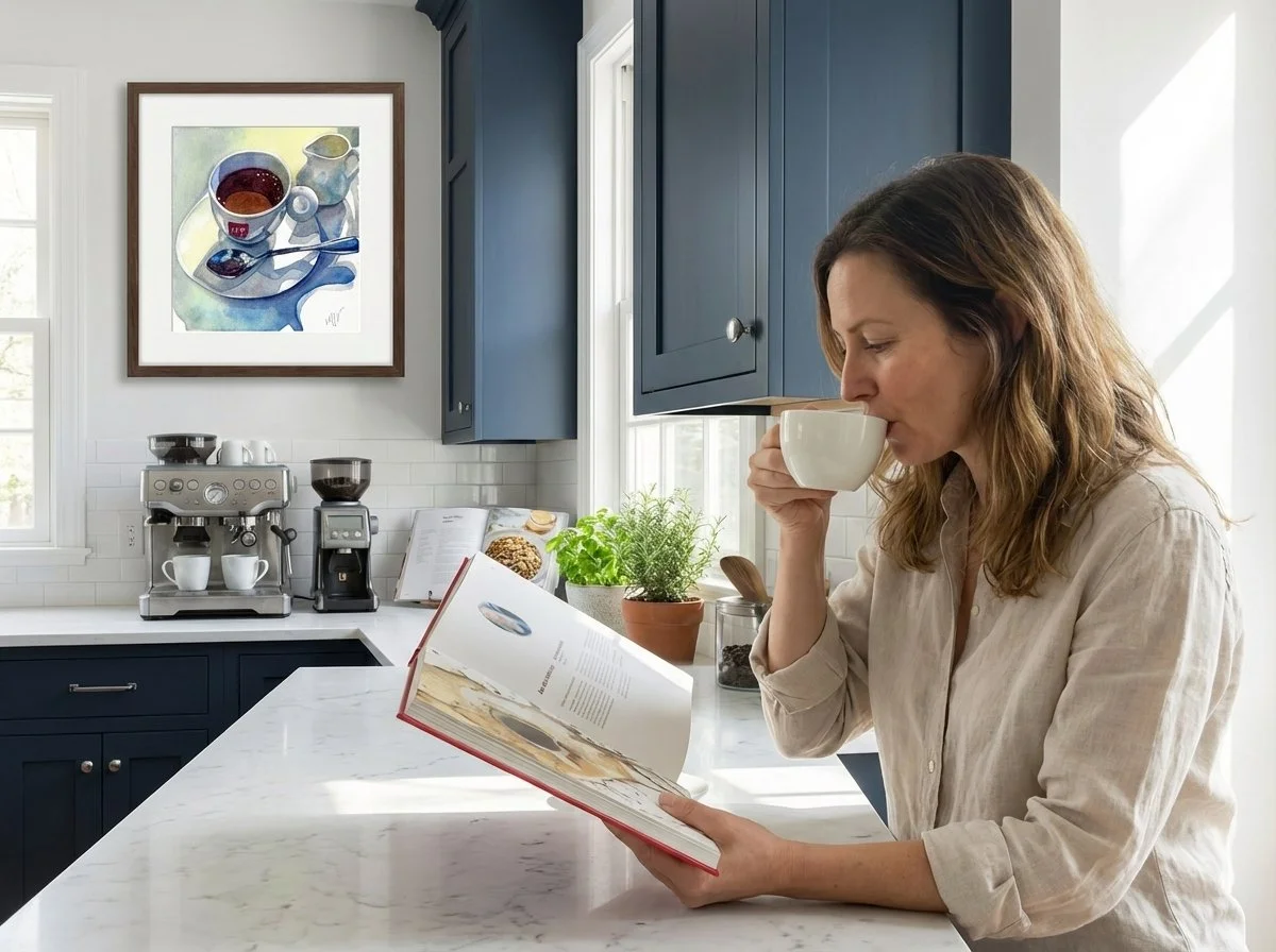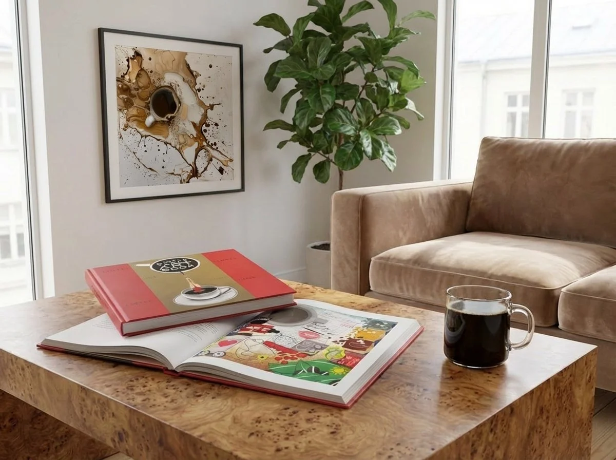 From homes and cafés to studios and shared spaces, these coffee-inspired fine art prints extend the work beyond the book. Each print is museum-quality, with 60% of every sale going directly to the artist.